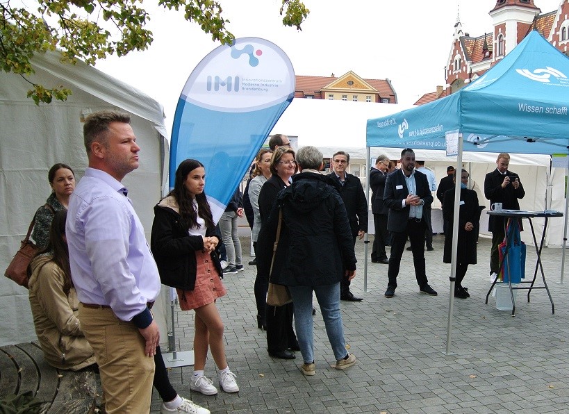 Mit dabei waren der Innovationscampus Elektronik und Mikrosensorik Cottbus (iCampus), eine Forschungskooperation zum Thema Mikrosensorik, aber auch das Innovationszentrum Moderne Industrie Brandenburg (IMI), das gemeinsam mit dem Mittelstand 4.0 Kompetenzzentrum klein- und mittelständische Unternehmen in den Bereichen Automatisierungstechnik, Digitalisierung und Künstliche Intelligenz unterstützt. Daneben präsentierten sich aber auch die Makerspaces der Hochschulen, wie das VINN:Lab der TH Wildau und das COLab der BTU mit aktuellen Fertigungstechniken. Makerspaces sind offene Werkstätten für jeden Interessierten, um eigene Ideen mit den neuesten Technologien auszuprobieren und so zum Beispiel einen Prototypen zu erstellen.