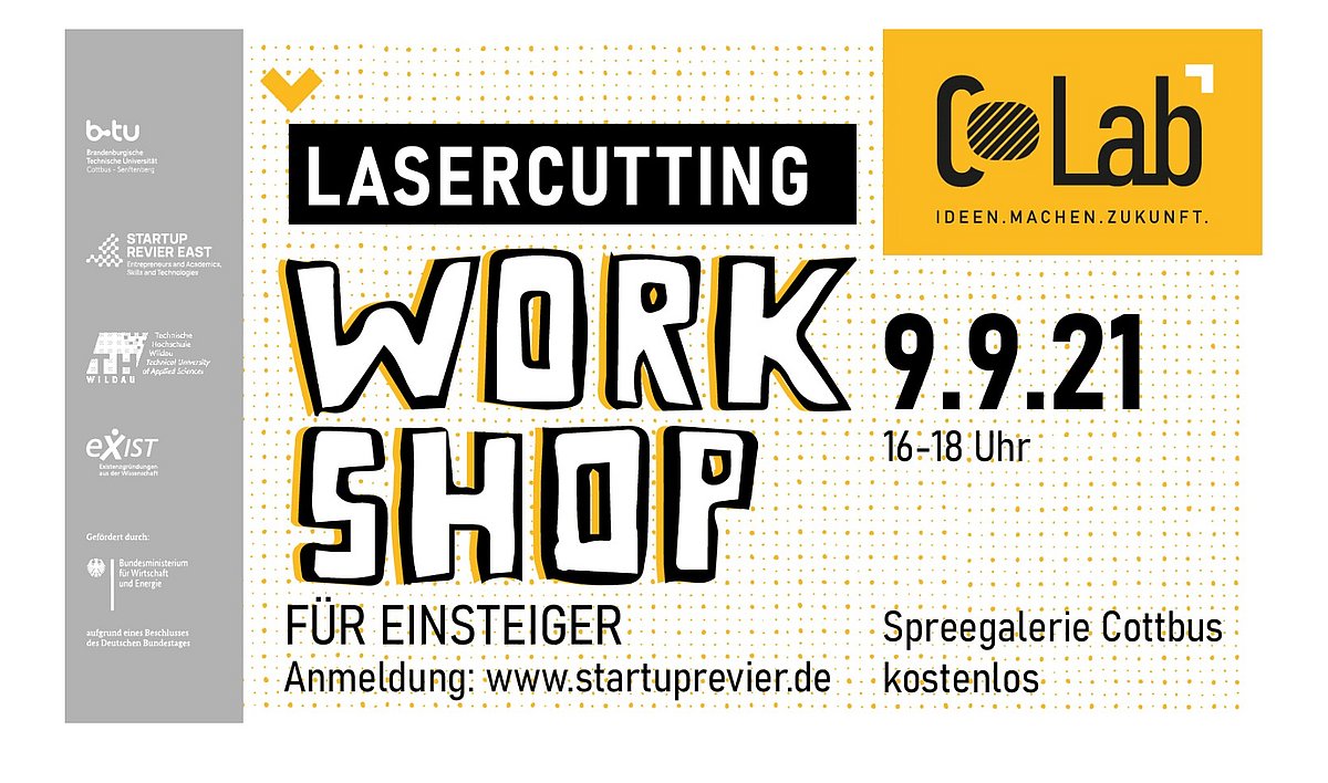Das COLab ist ein Strukturwandelprojekt der BTU Cottbus-Senftenberg und Teilprojekt des Startup Revier EAST. Alle Informationen zum Projekt und den Veranstaltungen findet Ihr auf: www.startuprevier.de und auf unseren Social-Media-Kanälen (Facebook und Instagram) unter colab.cottbus.